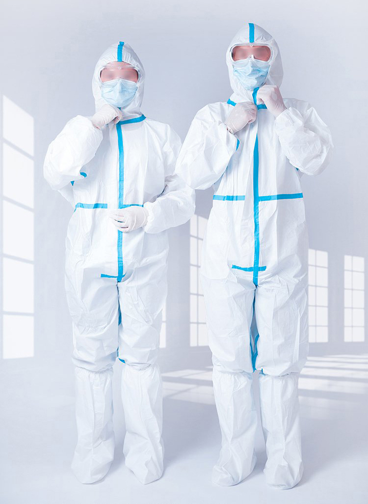 用途:醫(yī)用防護(hù)服具有良好的透濕性和阻隔性,能有效抵抗酒精、血液、體液、空氣粉塵微粒、細(xì)菌和病毒的滲透,使用安全方便,能具有效保護(hù)穿著者免受感染威脅。